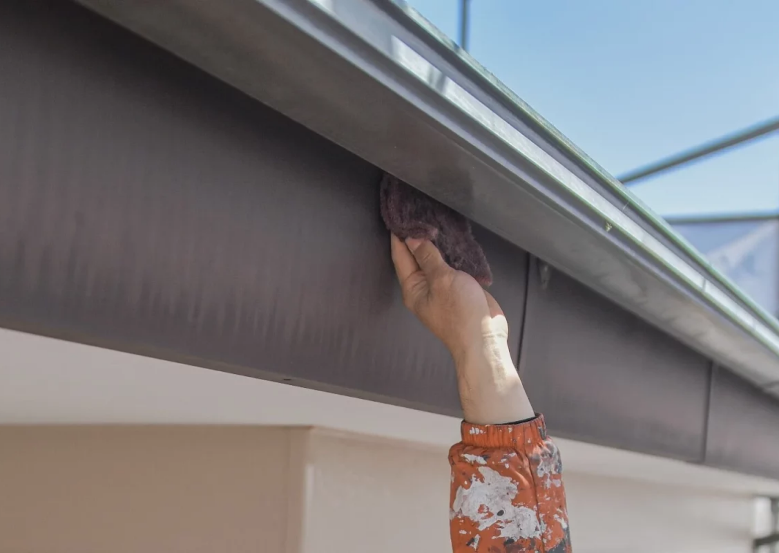 その後、雨樋や雨戸など壁以外の木部や鉄部の付帯塗装を仕上げます。ここまで来ると、お客様のお家の塗装工事をしているというよりも、「自分の作品を仕上げた」という感覚に浸っているのが、塗装技術者の大半の気持ちですね。