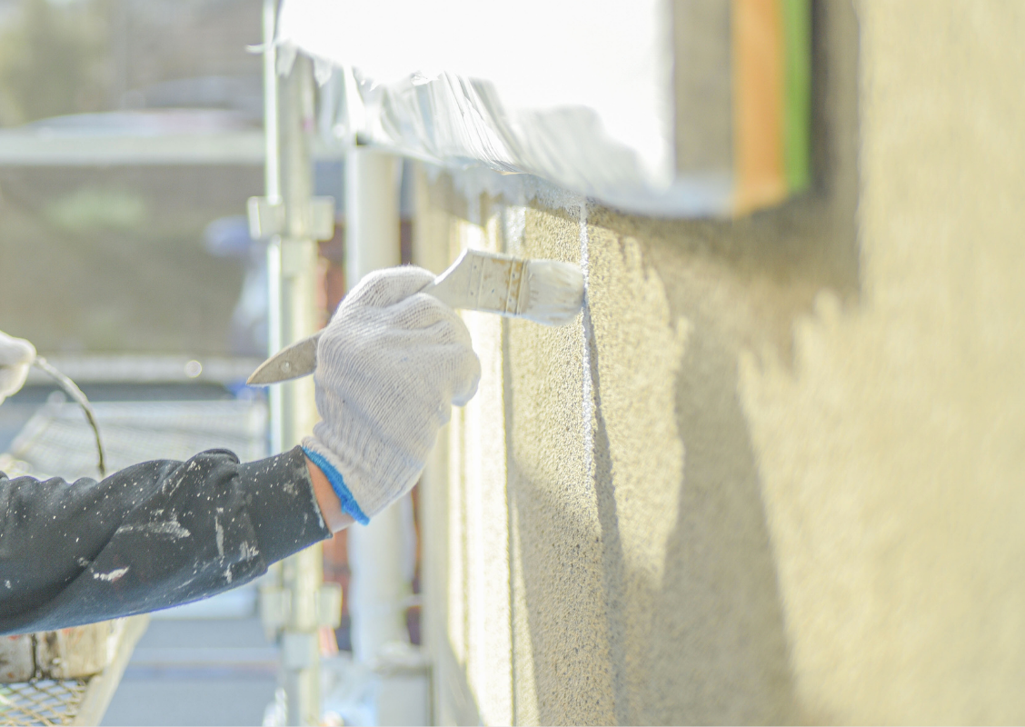 また、モルタル壁の場合には、細かいヒビ割れを埋め、上塗り塗料の吸い込みを防ぎ、仕上がりをよくするために厚膜の下地強化剤を使用します。