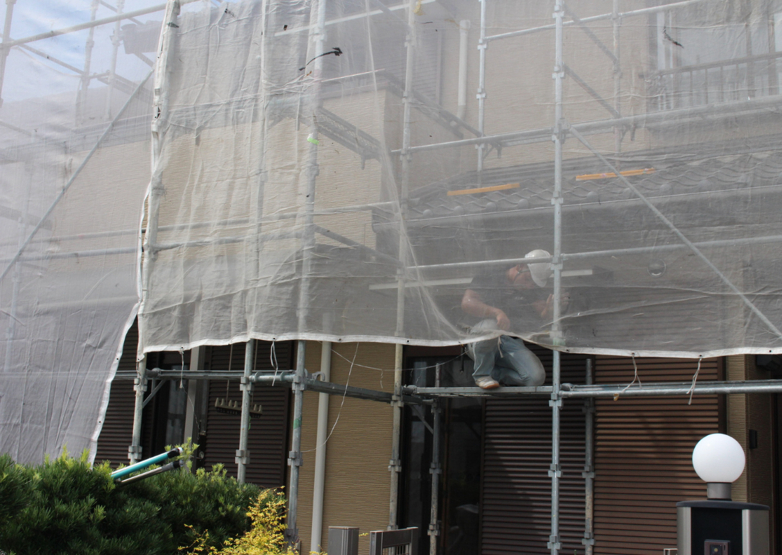 | ※一般の方が足場に登ってしまうと転落などの危険も伴いますので、施工期間中でも足場に登ったりしないでくださいね。また、子供さんたちが遊んで怪我をされたりすることにも気をつけてくださいね。 |
