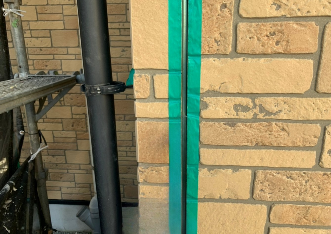 2)溝の両脇をテープで養生をし、必要に応じてバックアップ材を入れます。