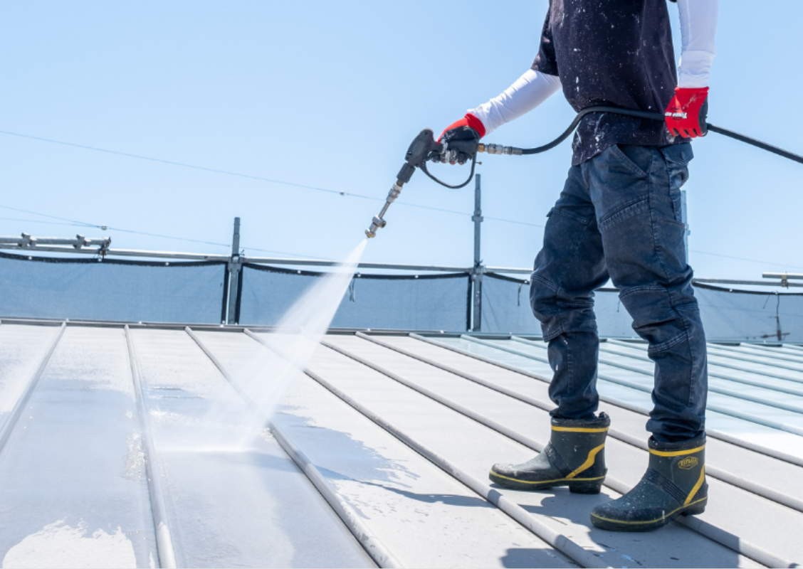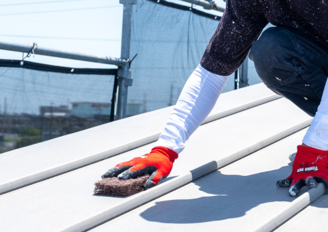 高圧洗浄では、屋根についてしまったコケやカビ、汚れ、前回塗装の塗膜等の不純物などを取り除きます。そうすることで、塗装面が剥がれにくくなります。